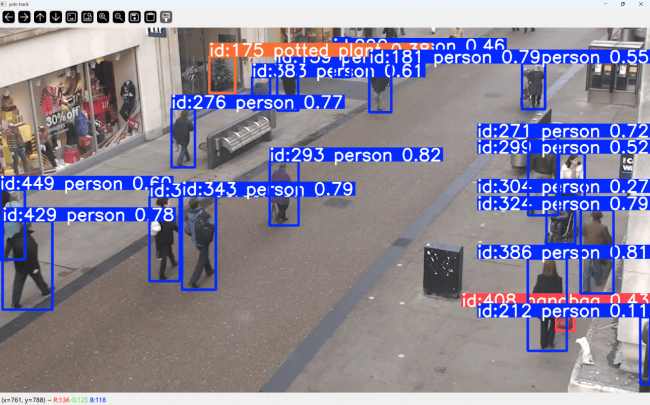 完成 20 项 YOLOv5 取 DeepSort 算法针对性调优,YOLOv5+DeepSort算法实测画面,持续 YOLOv5、DeepSort 等人工智能焦点手艺,从算法参数精准调优到硬件防护全面升级。